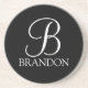 Black Personalized Script Monogram and Name Coaster