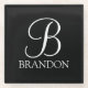 Black Personalized Script Monogram and Name Glass Coaster