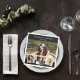 Create your own unique photo collage. Use four, 4 of your favourite photos. Personalize and add a name, age, date. Black background, white text.