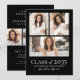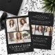 The back doubles as a graduation party invitation with a matching three-photo collage. Below the photos, the event details are presented in clean white typography, with space for the date, time, location, and RSVP information. The black-and-white color palette keeps the design sleek, minimalist, and easy to customize. You can edit the text, fonts, photos, and layout to match your style or school theme.