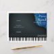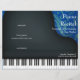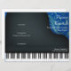 This is an elegant folded recital or concert program template featuring a stylized piano illustration on a background of clefs and music symbols.