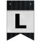 black pin stripe with silver congratulations bunting flags