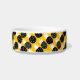 This is a heavy, durable bowl decorated with Tibbies of many colors, the perfect size for hungry/thirsty Tibs. The design is interesting and printing clear.