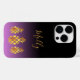 3 faux gold coloured tropical pineapples. Girly Purple, pink and black ombre background. Template for a name, golden coloured hand lettered style script.