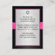 This pink, black, and silver floral reception card with a hot pink FAUX ribbon and jewelled brooch matches the Bat Mitzvah invitation shown below. You can also customize it to be a map or directions card. If there are any other matching items you require, please email your request to niteowlstudio@gmail.com.