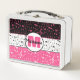 Great personalized gift for the music lover in your life, this design features a colour scheme of black pink and white with contrasting music notes colour on a three bar design. Can be fully personalized with a subtle name and monogram.