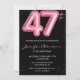 Black Pink Balloon Glam Glitter 47th birthday Invitation