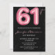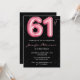 Black Pink Balloon Glam Glitter 61st birthday Invitation