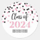 Black Pink Confetti Graduation 2024 Classic Round Sticker