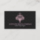 Elegant pink abstract costume designer logo over black floral damasks background. Fully customizable double sided business car template