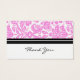 The overall business card was fine, but the color of the damask print was a bit more pinky purple then then pink that I wanted. The damask print which looks med. pink was more pinky purple .. which isn't what I expected. But the lettering was good !