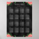 © Sunny Mars Designs - Floral Hibiscus: Pink on Chalkboard Wedding Seating Charts for Sixteen Tables - Customizable, modern, elegant, classy, trendy, chic, custom printed formal black chalkboard wedding table seating charts with beautiful pretty pink swirly floral tropical hibiscus design against a blackboard or chalk board background.