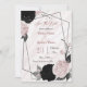 black and soft pink flowers grey leaves on a marble background geometric save the date invitation