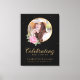 Elegant personalized black, pink and gold floral photo funeral welcome sign featuring a gold photo frame adorned with pink roses.