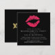 Invite your best girls to party it up with the bride-to-be with these chic bachelorette party invitations! Rounded square cards feature a black background with a pink lipstick kiss print and modern, minimalist white text. Reverse side shows "XOXO" in faux gold brushstroke typography.