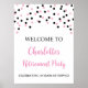 Custom text retirement party poster with black and pink confetti.