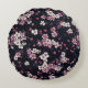 Black Pink Sakura Flowers, Pattern Design, Round Pillow