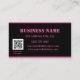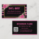 Modern elegant classy black and hot pink stripes with golden border watercolor pink flowers and back side QR code discount business card on hot pink background. You can easily change all details, fonts, colour, size and background colour,front and back both side. Replace your own QR code to your website on social media account.