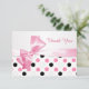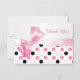 Classy elegant black, pink, white polka dots pattern with ribbon effect Bat Mitzvah Thank You flat card. You can use it for any occasion, easy to customize - change font, colour, size and add your own text. Please note: ribbon is a printed image, not real.