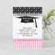 Plack, pink and white polka dots, stripes and mortar graduation party Invitation.