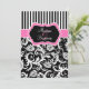 Black Pink White Striped Damask Wedding Invite