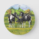 Black Pinto Paint Quarter Horses In Summer Pasture Round Clock