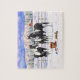 Black Pinto Paint Quarter Horses On A Farm In Snow Jigsaw Puzzle