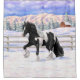 Black Pinto Piebald Gypsy Vanner Draught Horse Trotting in Snow.