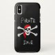 Personalized this cute black pirate skull and crossbones iPhone cell phone cover with your first name. Great gift idea for any wannabe pirate!