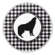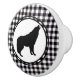 This ceramic cabinet knob is shown in a Black, White plaid with a wolf print.