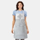 Black and white plaid pattern, holiday apron. Features, rustic farmhouse style "Milk & Cookies Co." logo design.