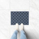 Black polka crosses on blue-grey doormat