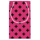 Black polka crosses on fuchsia small gift bag