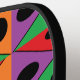 Black polka dot on colourful shapes pickleball paddle