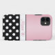Custom iPhone 5 case personalized with your name, and designed with white polka dots over black, and a gradient baby pink.