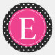 Black Polka Dot Pink Monogram Classic Round Sticker