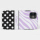 Custom iPhone 5 case personalized with your name, and designed with a black & white polka dot pattern and a light zebra print pattern with purple & white zebra stripes.
