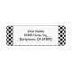A custom return address label with round letters reading new address and room for your custom address with simple black polka-dots big and small on a fun retro background pattern. Customize It to change fonts, add custom text, change background colours and more.