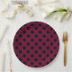 Black polka dots on burgundy paper plate