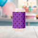 This can glass features a classic design of black polka dots on a violet purple background.