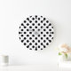 Black polka dots on white large clock