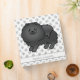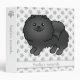 Destei's original cartoon illustration of a cute black coat color Pomeranian breed dog. There is a personalizable text area that is shown on the front and on the spine. The background has a pattern of gray dog paw prints. This cute binder makes a nice way to store your dog's veterinary records and other important papers.
