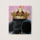 Cute little black poodle puppy wearing a golden crown with jewels.