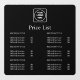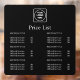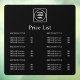 Present your services with style using this black price list window decal. Perfect for salons, cafés, retail shops, and offices, this custom storefront signage can be personalized with your business logo and details. Its minimalist modern design makes it easy to read, while the durable material ensures long-lasting use. A sleek way to display prices and promote your brand at the same time.