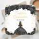 This elegant and glamourous Quinceañera birthday coaster features a beautiful princess with dark hair in a black ball gown. The text combines handwritten script and modern sans serif fonts for a classy and sophisticated look. The floral arrangements and gold confetti create the perfect blend of rustic and chic.