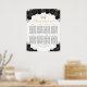This elegant and glamourous Quinceañera table seating chart features a gold crown and beautiful black floral arrangements with gold confetti. The text combines handwritten script and modern sans serif fonts for a classy and sophisticated look.