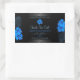 Make a lasting impression with this elegant and exotic product label design featuring pretty sky blue hawaiian flowers and palm leaves on a black background. A cool palm leaf shadow matching to the border frames.