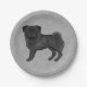 Black Pug Dog Breed Cute Cartoon Illustration Grey Paper Plate