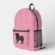 Black Pug Dog Cartoon Mops Pink Love Heart Pattern Printed Backpack