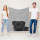 Black Pug Dog Head Close-Up Cartoon Illustration Fleece Blanket